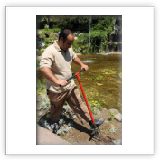 Tanto el mástil como el travesaño superior de la cruceta de agarre manual, estarán preferentemente recubiertos de un material aislante para establecer un aislamiento eléctrico y evitar descargas en caso de incidir la herramienta durante su cavado sobre algún cable eléctrico.