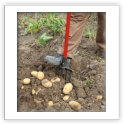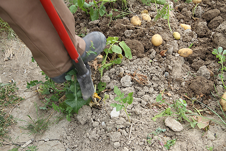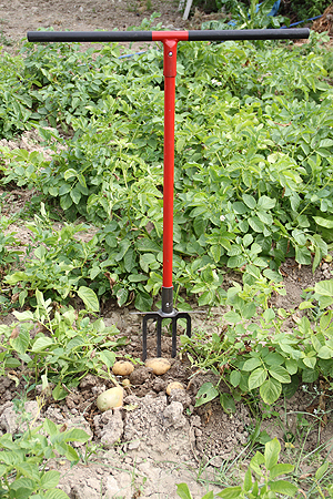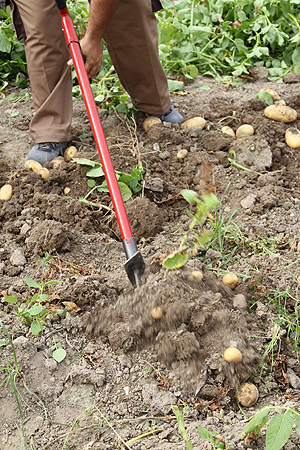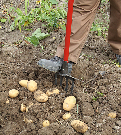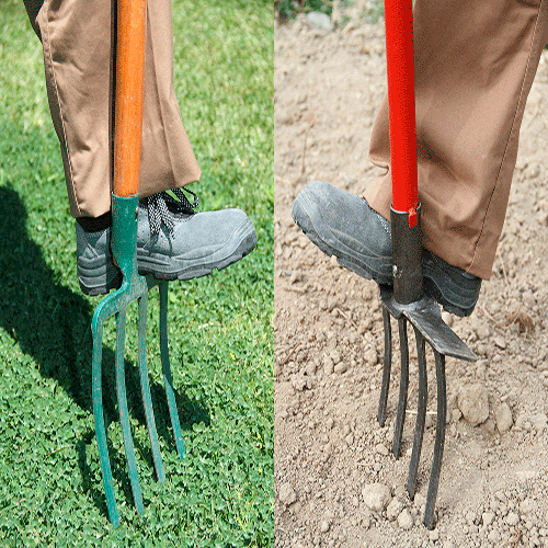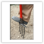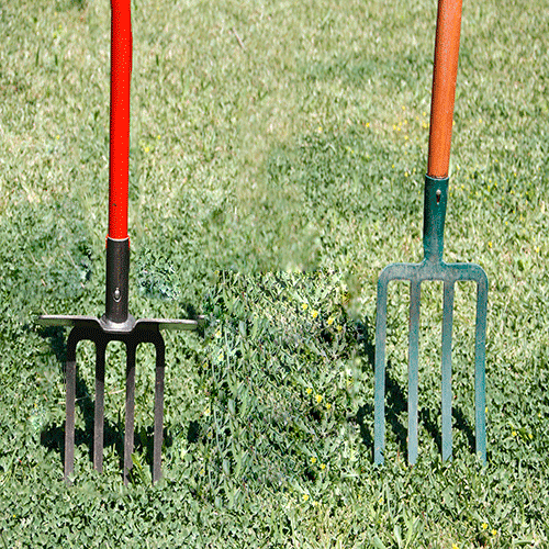 Tanto los extremos de los dientes que forman la horca como el borde inferior de la pala de la herramienta, serán afilados para posibilitar un mejor clavado sobre el terreno.