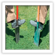 La herramienta cavadora propiamente dicha, ya sea una pala o palote o una horca , contará con un regruesamiento o soporte superior para apoyo y empuje con el pie sobre la propia herramienta y conseguir con ello un mejor clavado sobre el terreno.